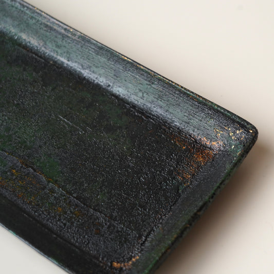 漆器|張耀鑫-墨綠色脫胎盤(長型) 2