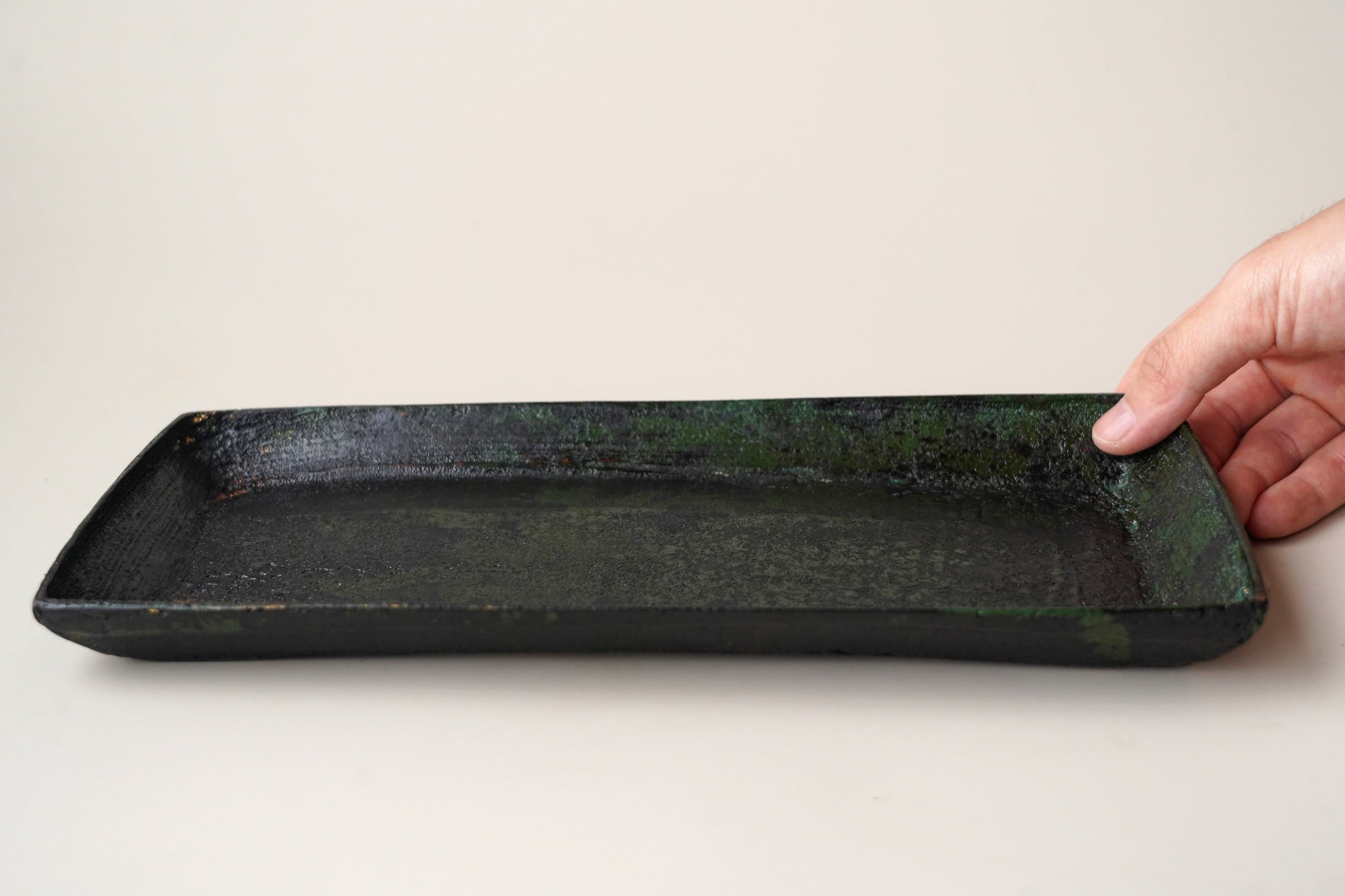 漆器|張耀鑫-墨綠色脫胎盤(長型) 2