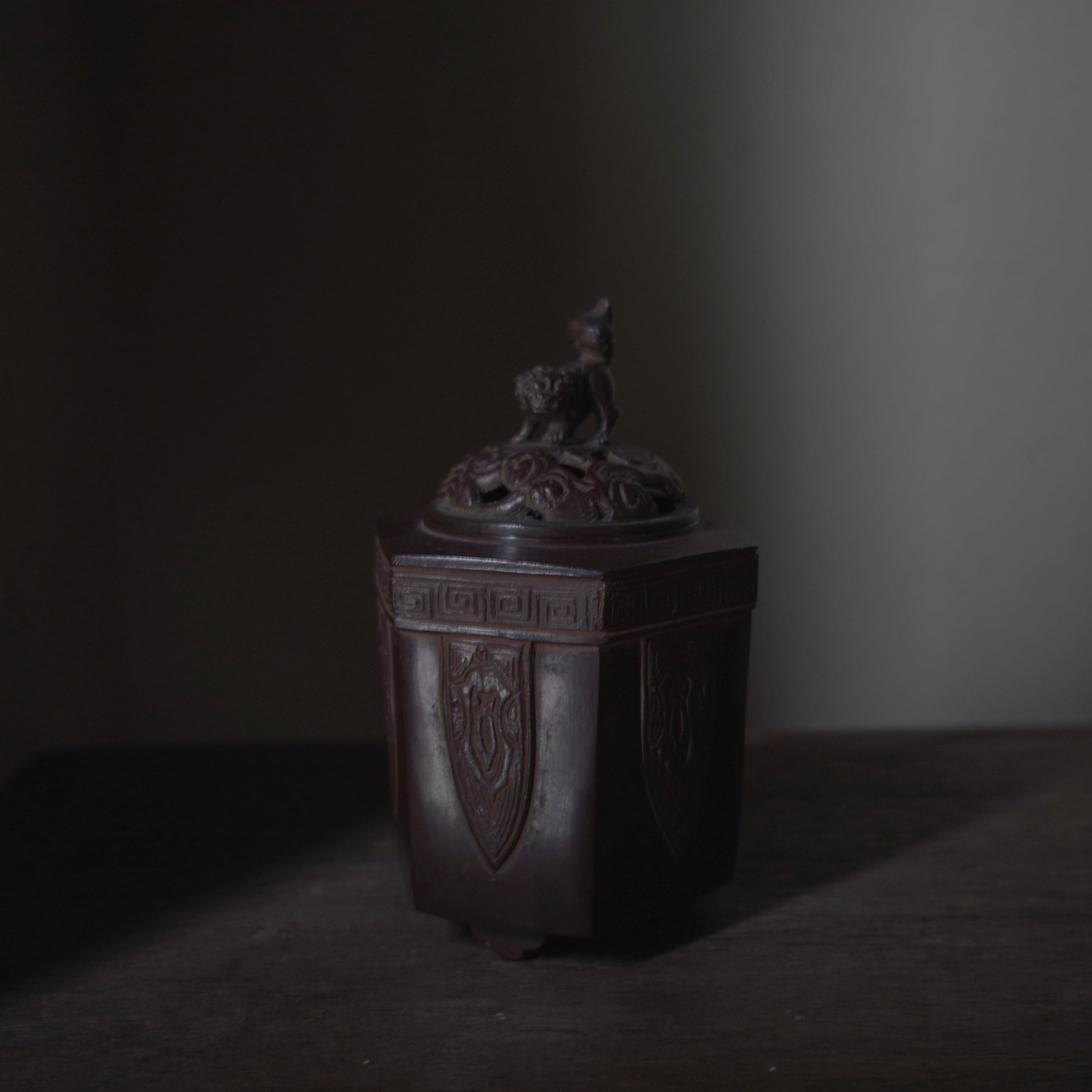 昭和狛犬雕製/六角宣德銅香爐