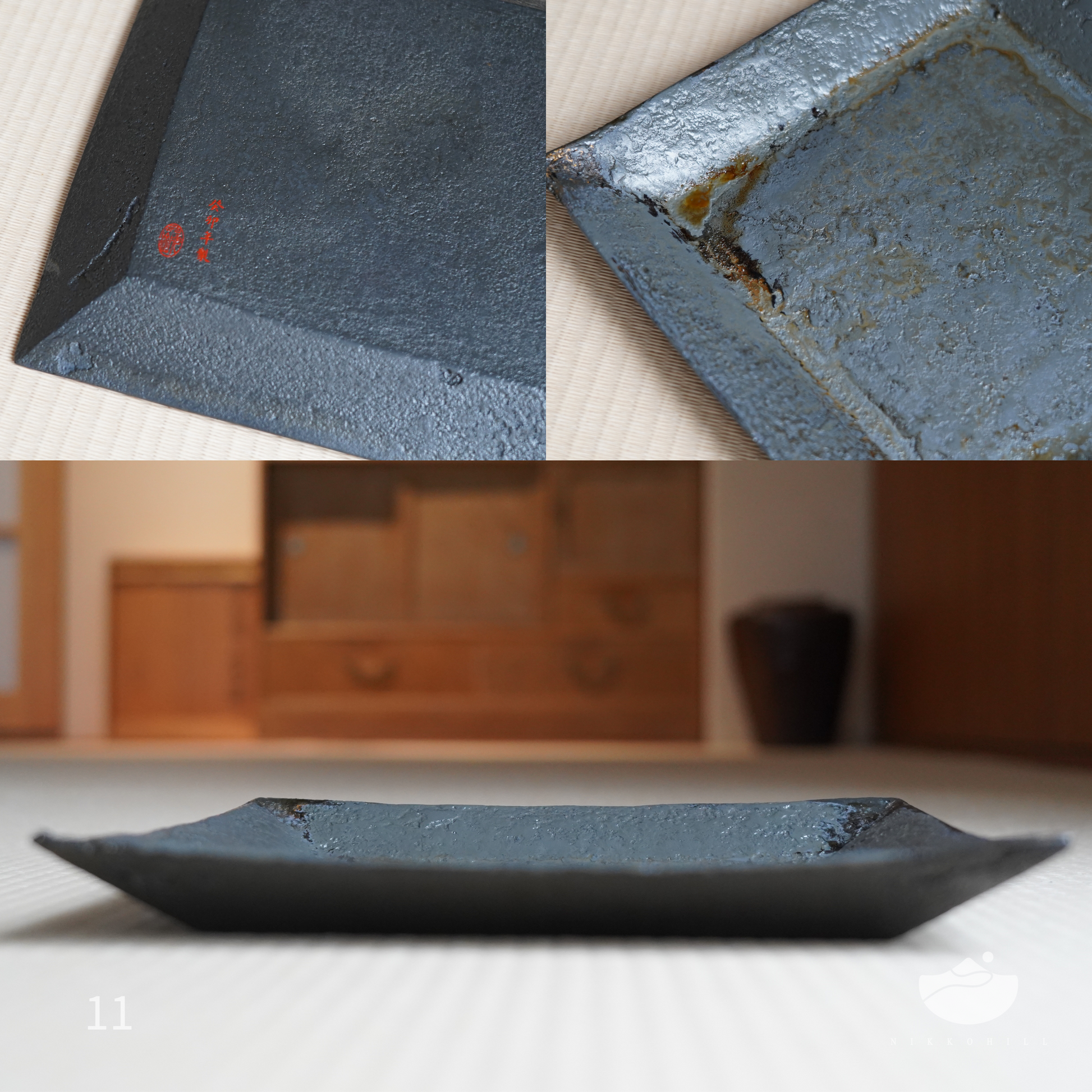日光山方型漆盤(藍灰色)