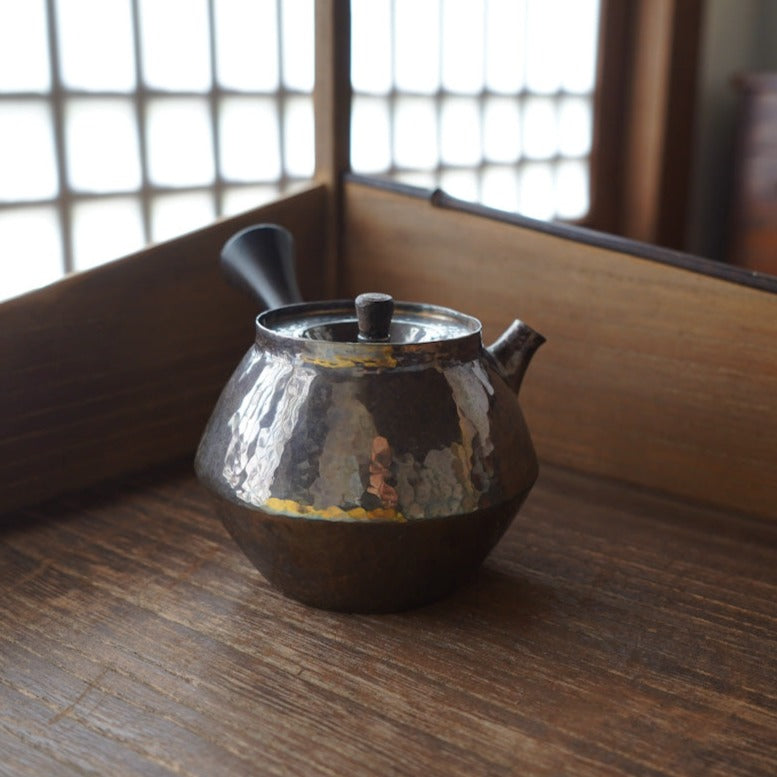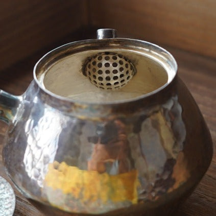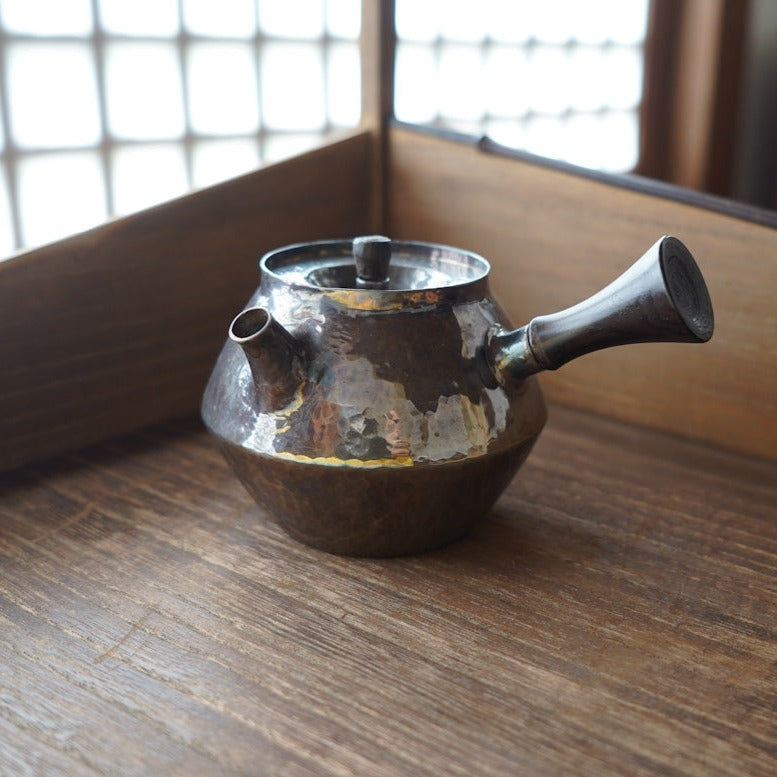 黑檀壺紐功夫手把雙錐形琉化銀壺