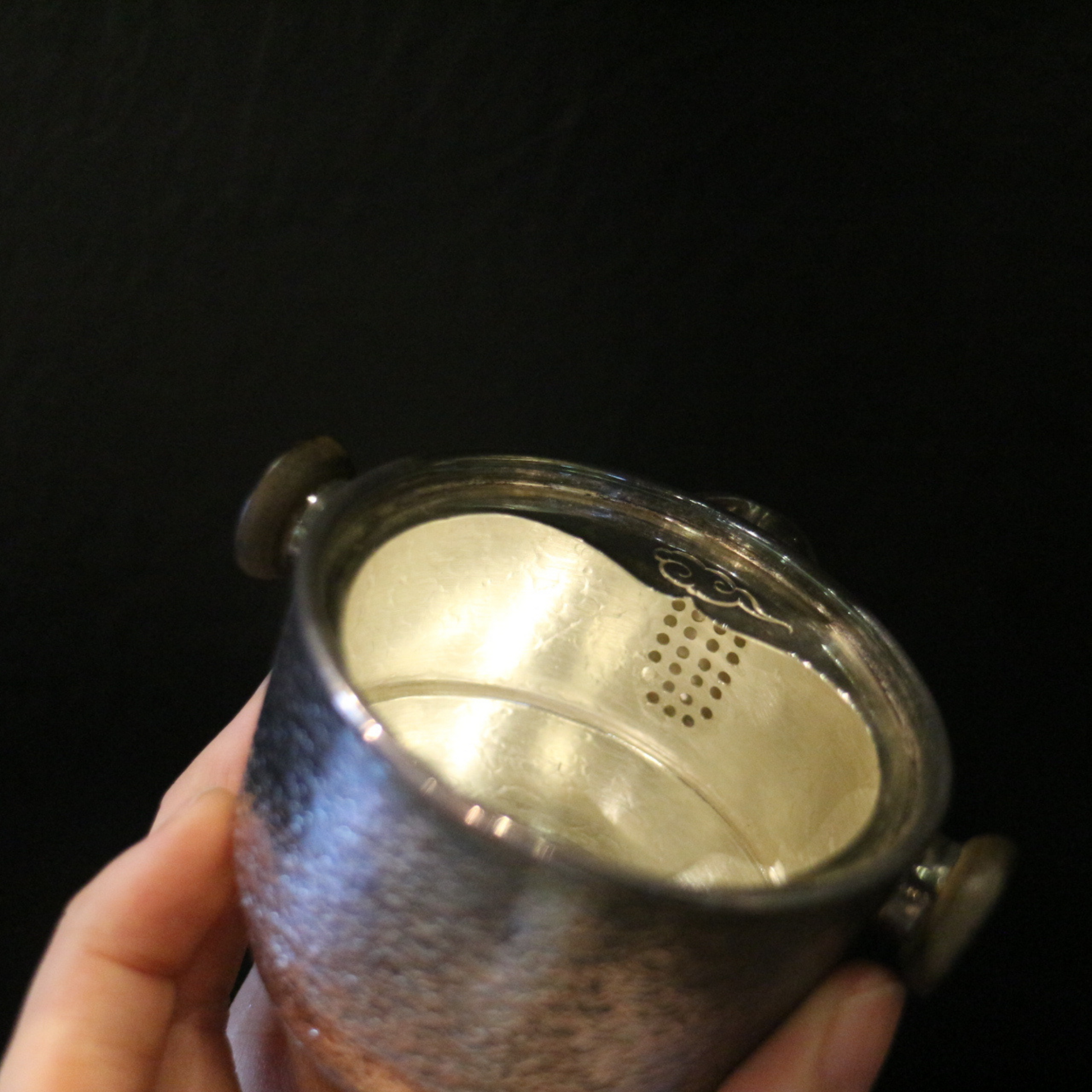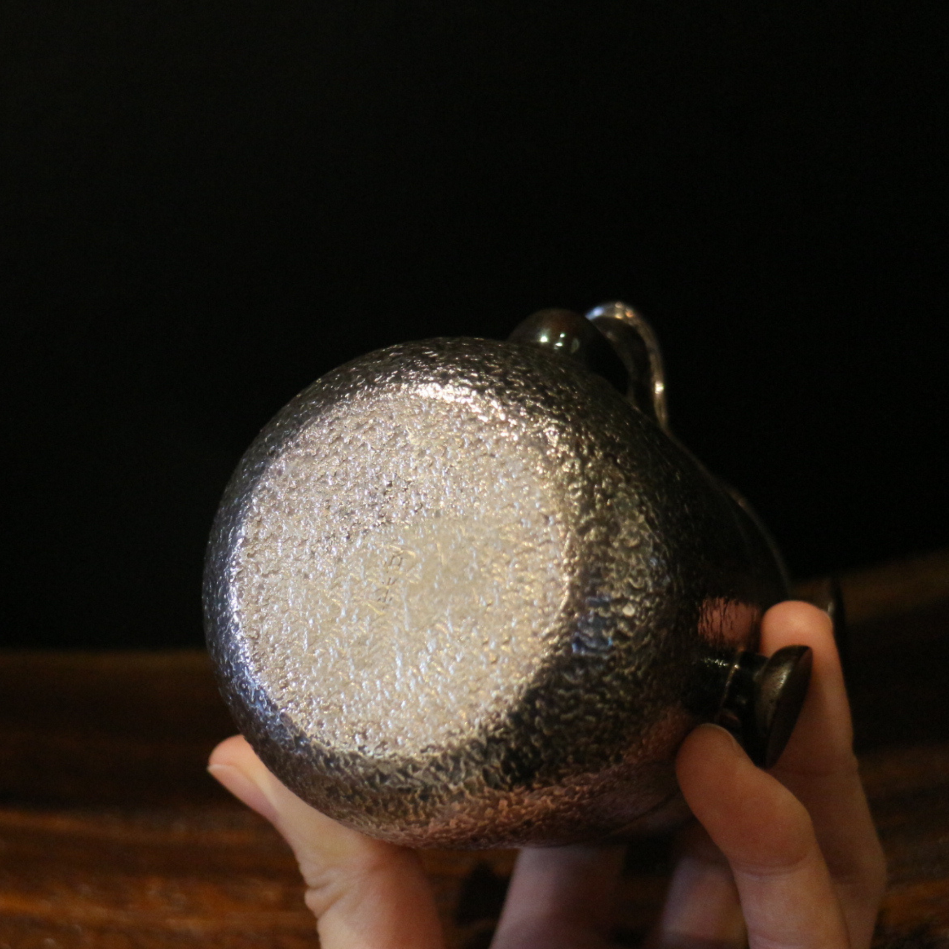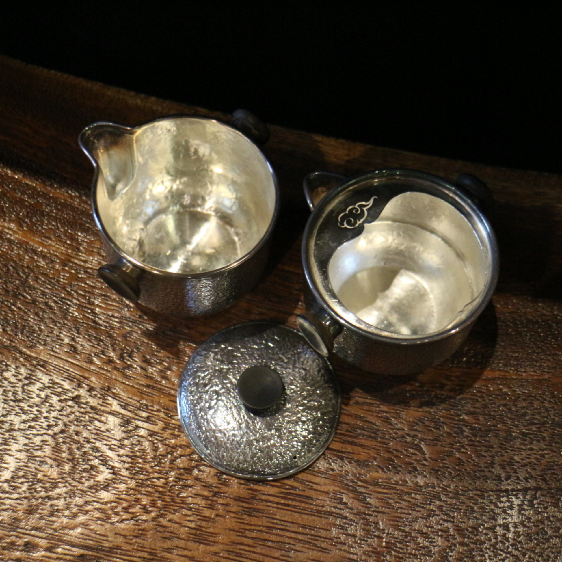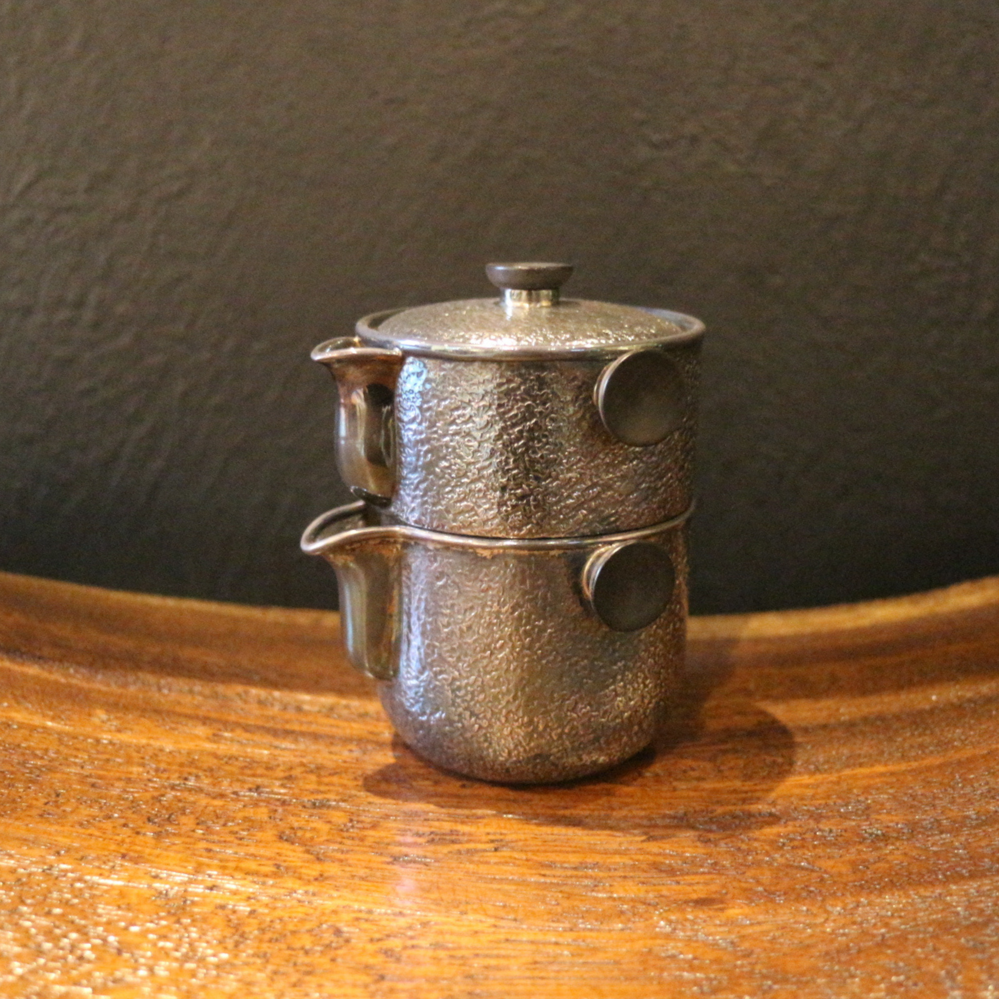 銀蓋碗公杯旅行組 (槌目紋琉化/黑檀壺紐&手把)